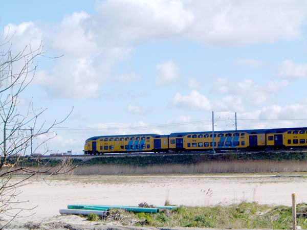 Links de westpunt van Flevoland, onder de A6 rijksweg.